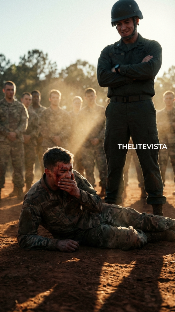Above me, the relentless southern sun glared down, but it was blocked out by a shadow. Captain Raymond Blackwood. He stood over my twitching, bleeding body. His boots, polished to a mirror shine that defied the dirt of Fort Benning, were planted firmly on either side of my head. I tried to push myself up, my hands slipping in the mud and the fresh blood pouring from my shattered face. Blackwood just leaned down, his voice barely a whisper over the ringing in my ears.