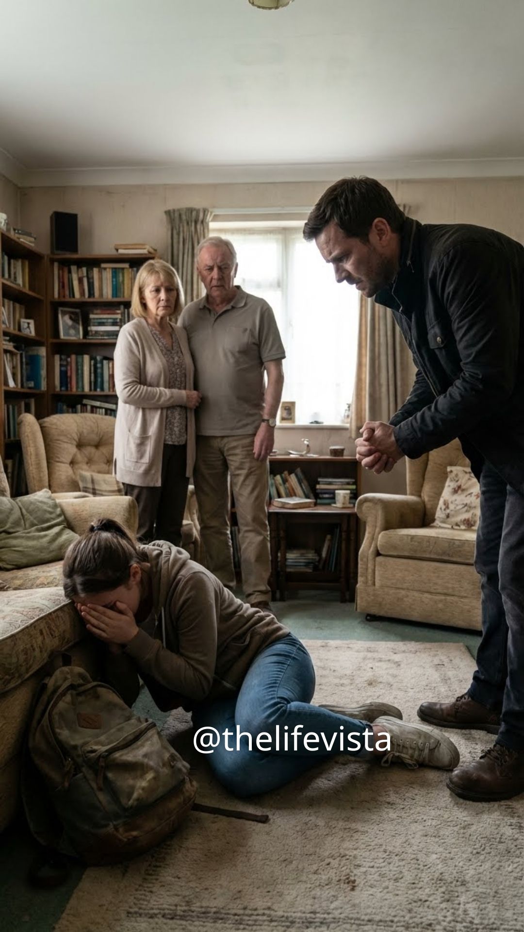 The living room smelled of stale coffee and something sour. Evan stood near the stairs, pale, not saying a word. And then I saw Hannah.