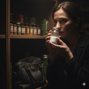 In the back of the pantry, behind a row of spices, I found a small, unlabeled jar filled with a white crystalline powder. I smelled it carefully. Bitter almonds. Cyanide. I put the jar in my bag.