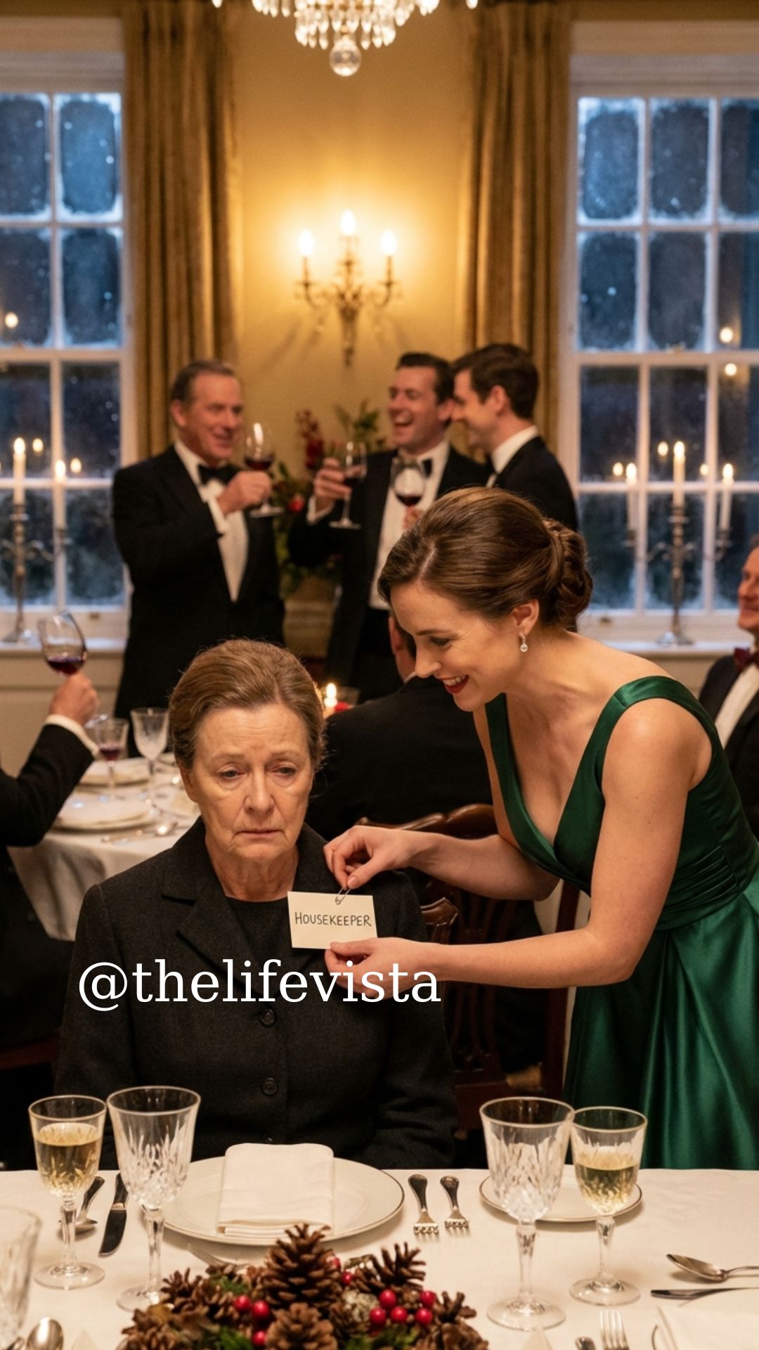 The Bennetts’ dining room looked like a magazine spread—gold chargers, fresh eucalyptus, candles tall as wine bottles. Outside, snow pressed against the windows of their Connecticut colonial like a polite threat. Inside, laughter floated warm and sharp.