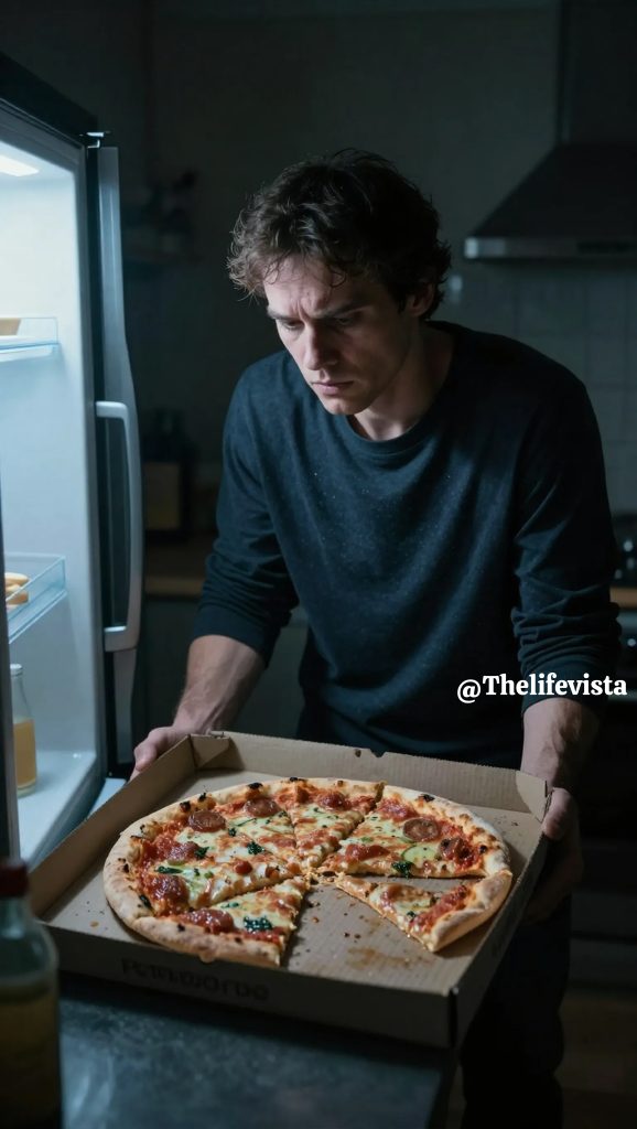 I didn’t say anything right away. I just stood there with the fridge open, letting the cold h!t my face. My heart was doing that thing where it didn’t know whether to break or go numb. I took out the box, reheated one of the slices, and sat at the table by myself. That’s when my mom walked in holding laundry. She paused when she saw me.