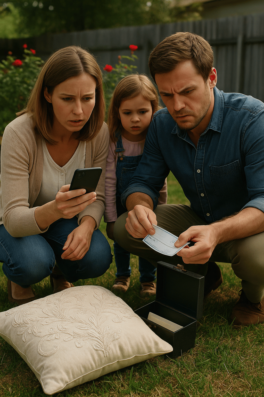 Kate’s heart skipped a beat. She rushed outside after him, confusion clouding her thoughts. They knelt beside the pillow, which now lay among the roses. At first glance, it looked like any other pillow, but then they heard it—faint but steady. The unmistakable sound of a ticking clock.