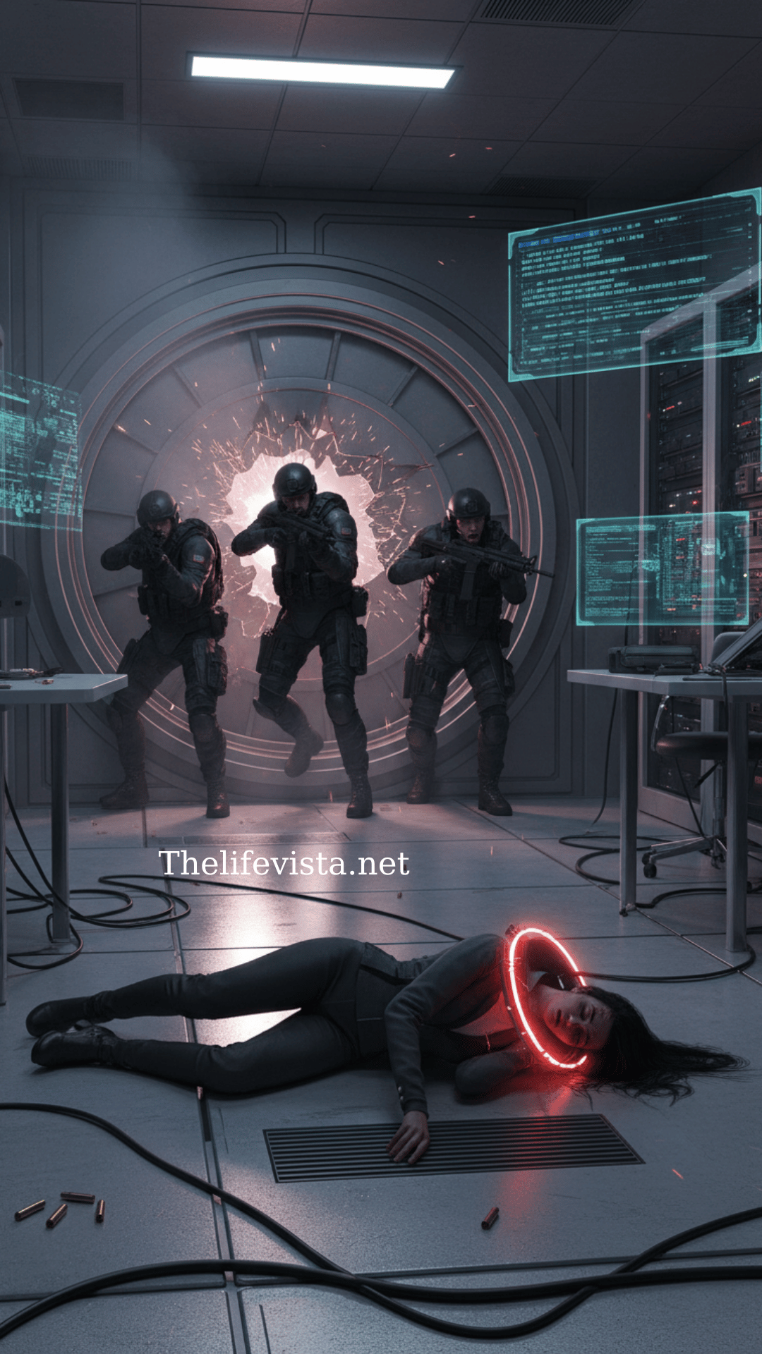 And then the world erupted into flashing alarms, heavy boots pounding down the hallway, and the metallic screech of security bolts disengaging.