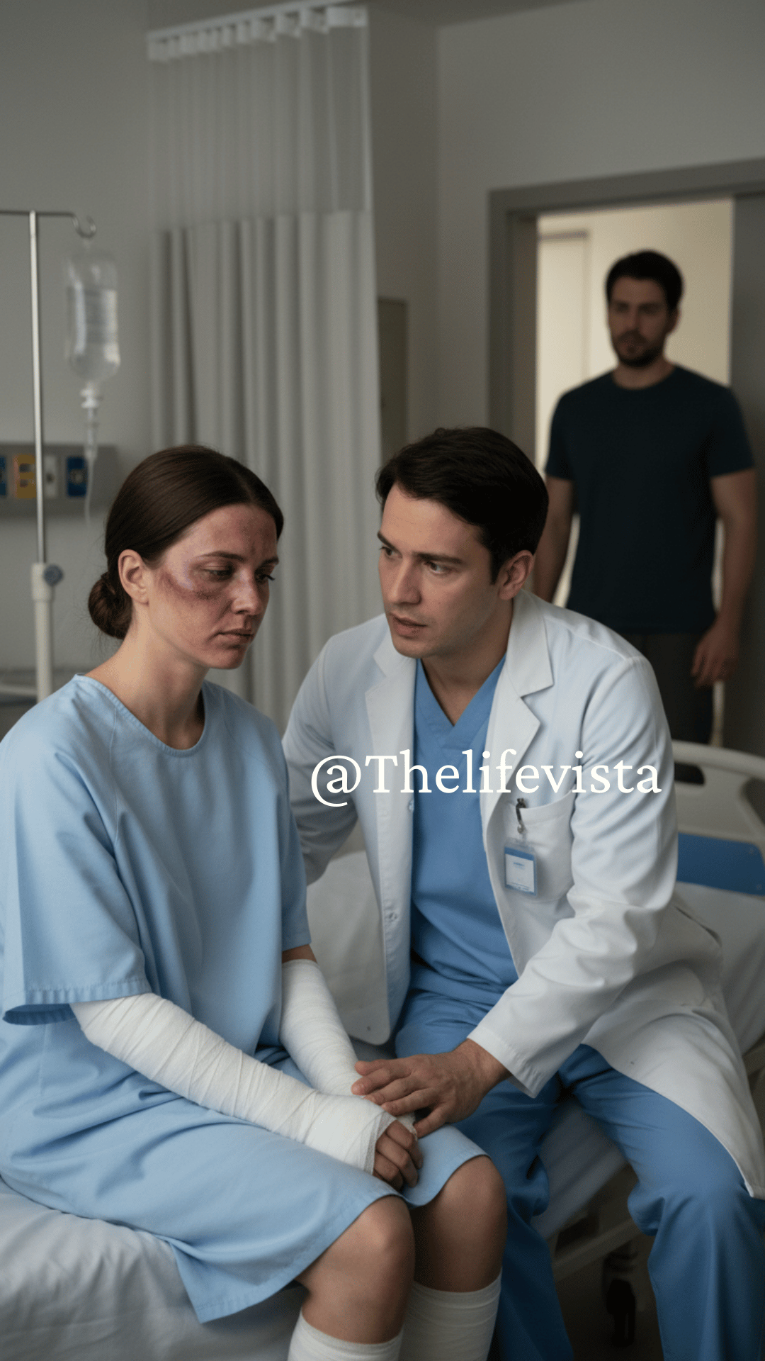 “Doctor, you’re making a mistake,” he said, forcing out a laugh. “My wife is fragile. She gets dizzy. She falls. Isn’t that right, sweetheart?”