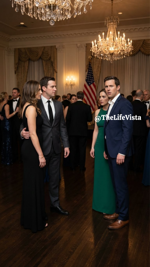 The conversation around them slowed, then stopped. People turned. Whispers rippled outward.