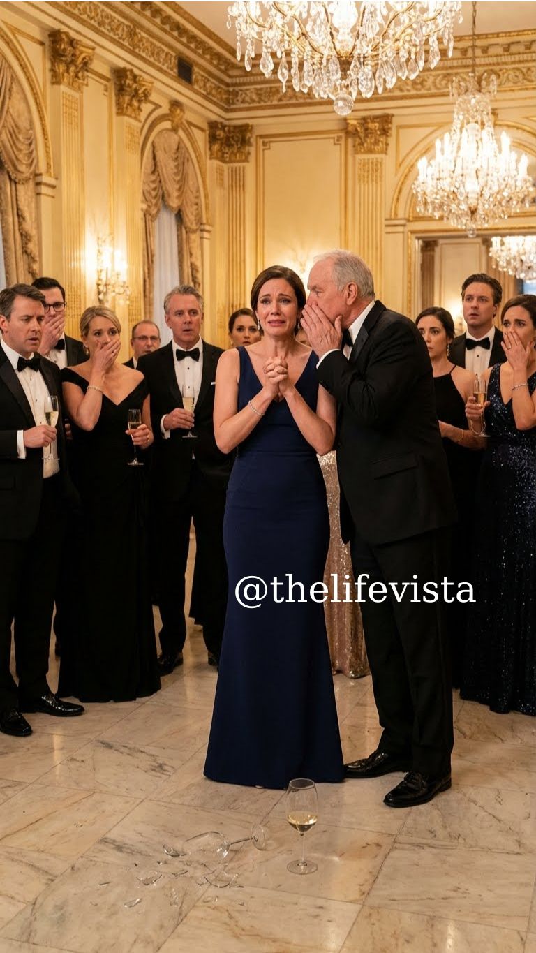 Behind me, I heard a sharp clink. Mark’s glass slipped from his fingers and shattered on the marble floor.