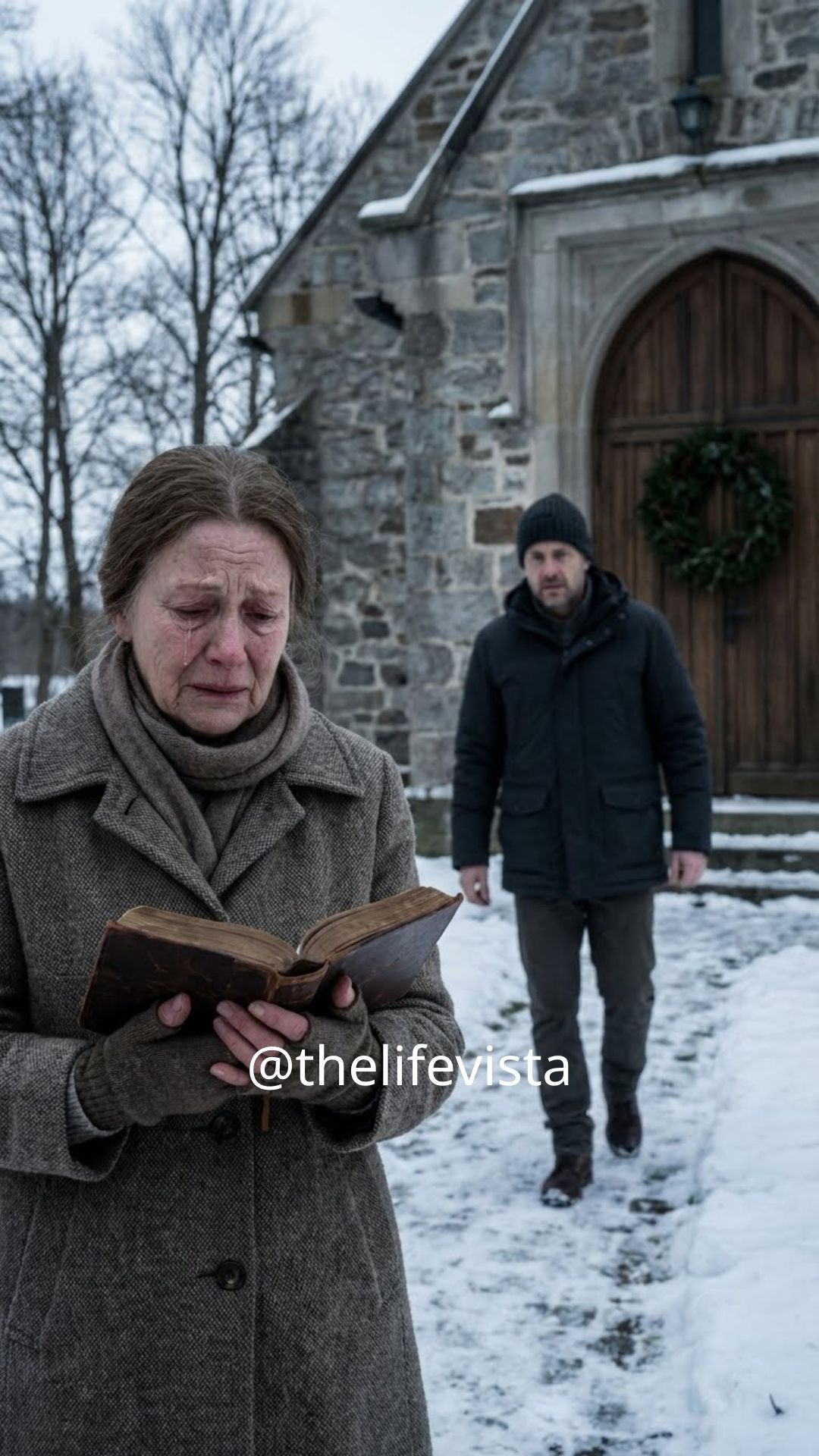 By December, I was moving through days like a guest in my own life. Christmas morning came anyway. I went to church alone, sat in our usual pew, and tried to sing without my voice breaking. After the service, as people hugged and offered condolences, a man I didn’t recognize approached me near the steps. He was tall, mid-forties, wearing a plain gray coat.