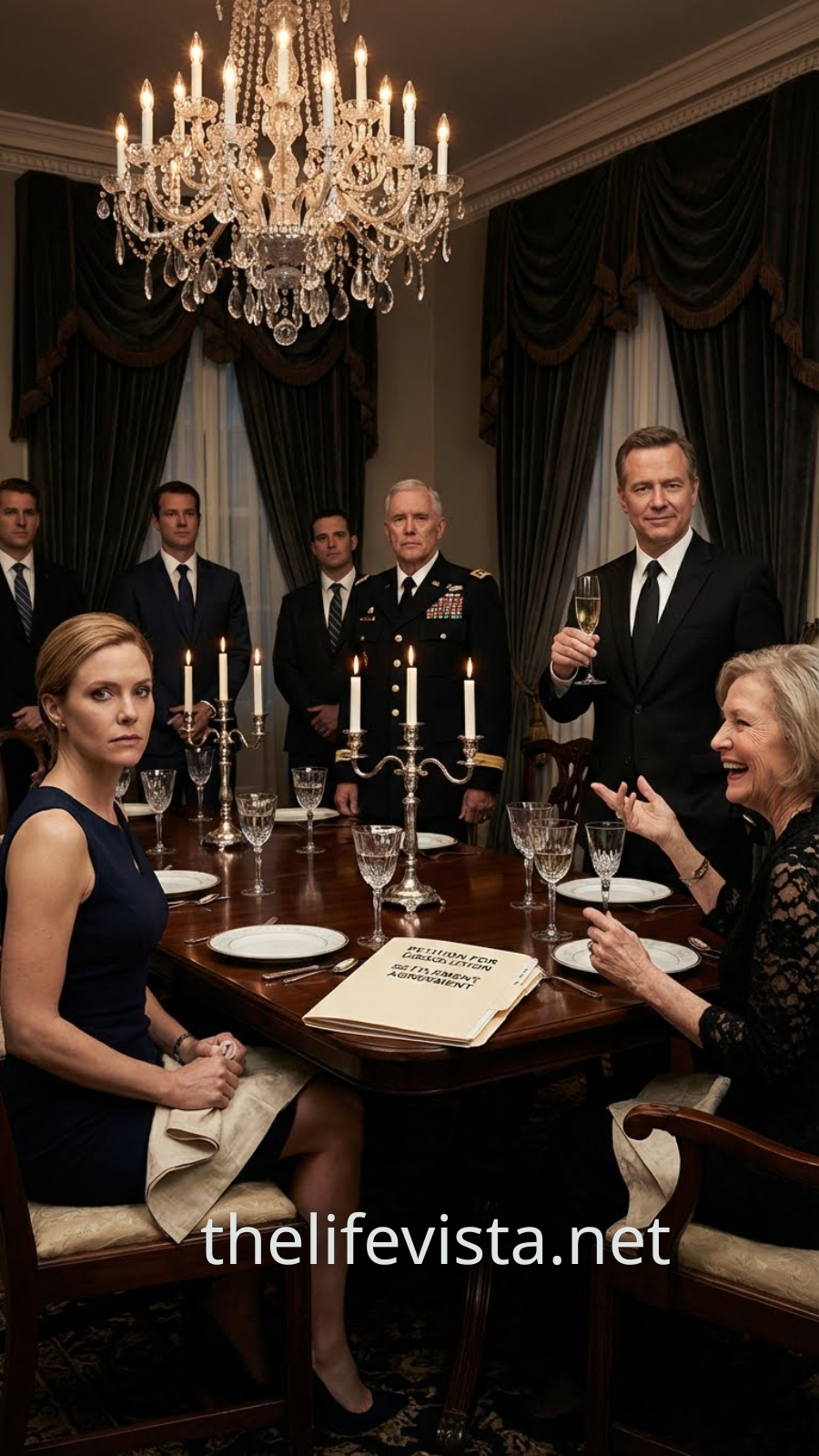 Heat crept up my neck. Humiliation swept over me—hot and prickly—because the room wasn’t just watching a divorce. They were watching a woman lose her dignity between the main course and dessert.