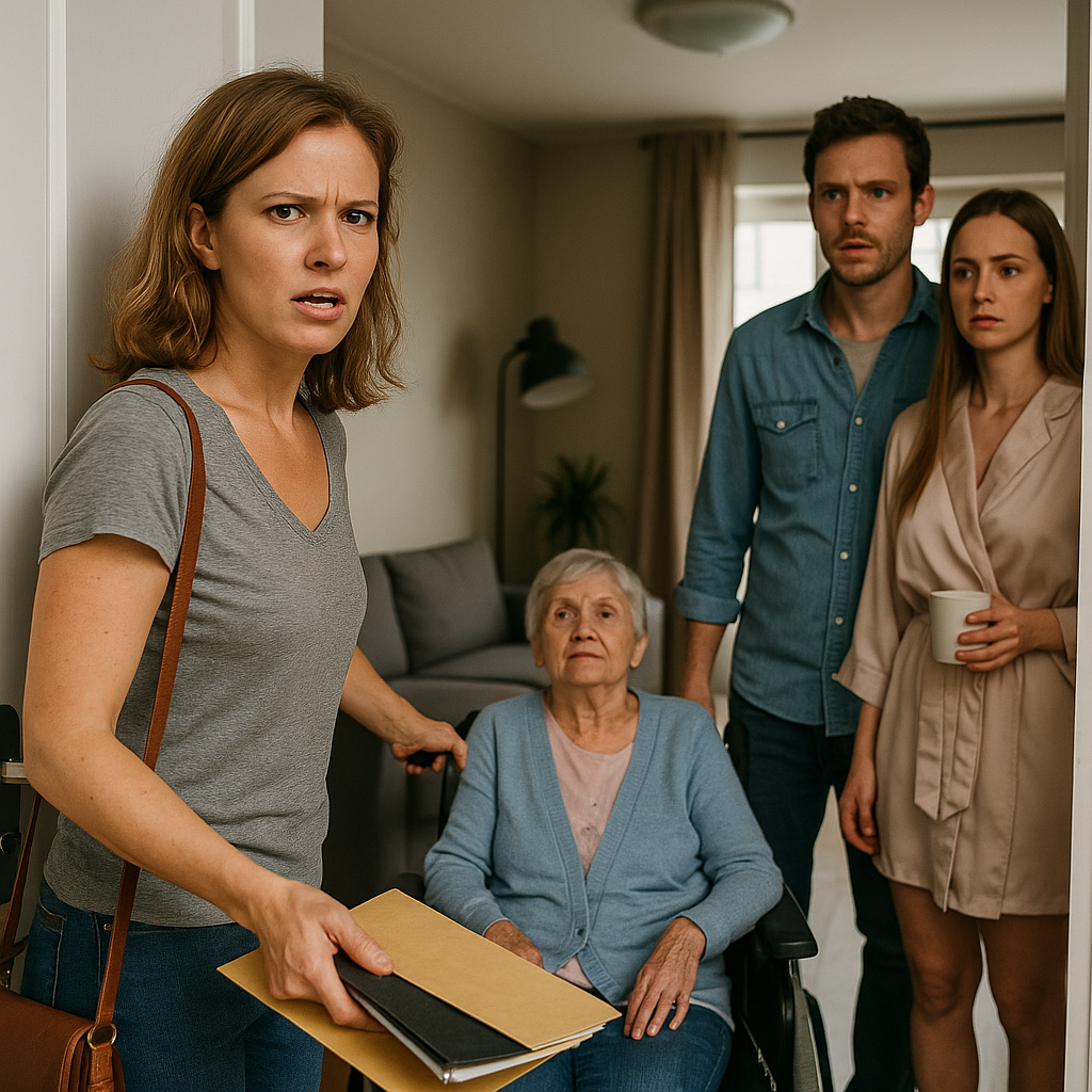 Before he could respond, I rolled the wheelchair inside, parked it in the living room, and began arranging her blanket.