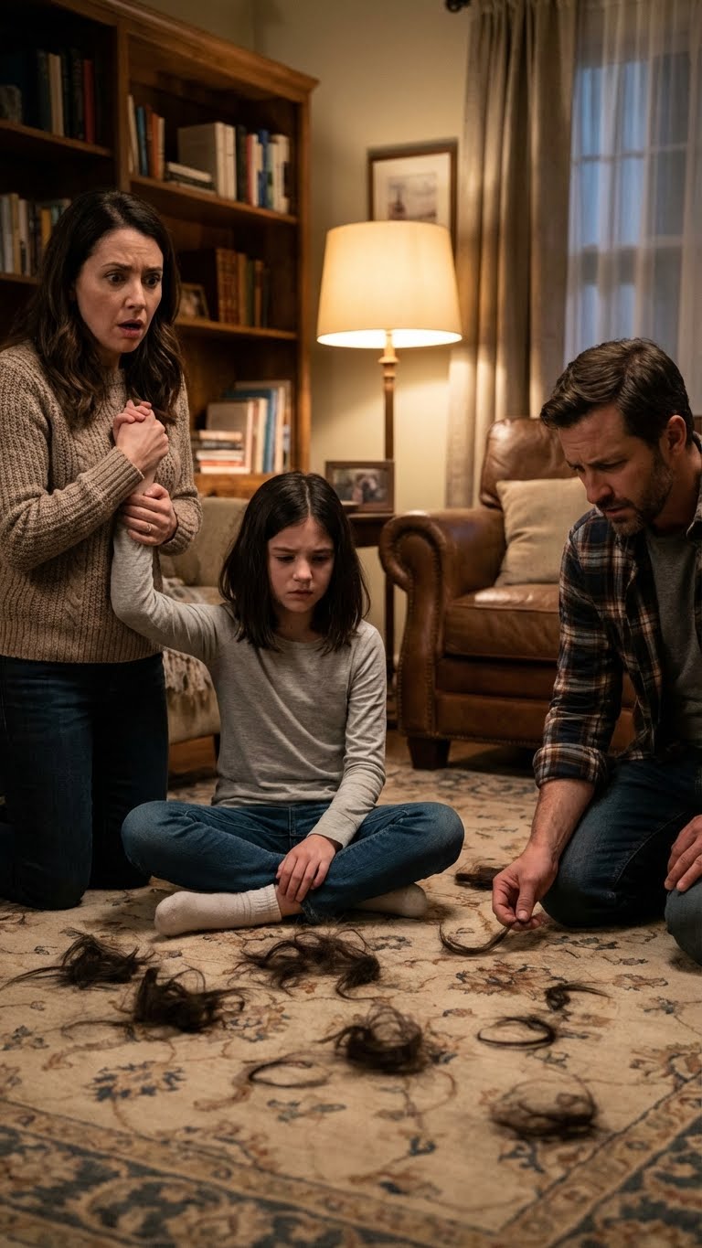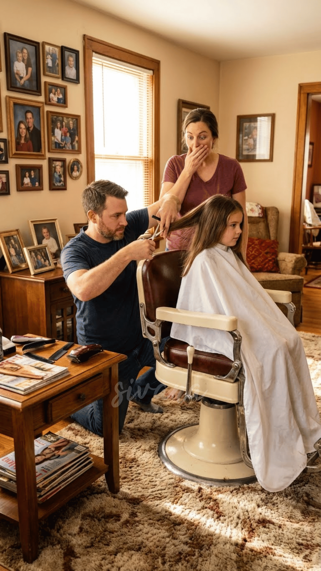 My husband came home from a work assignment and started trimming our 8-year-old daughter’s hair, just like he always did. But then he froze. “Come here a moment,” he whispered, trembling. When he gently lifted her hair to look closer, the color drained from his face—and in that instant, I knew something was terribly wrong.