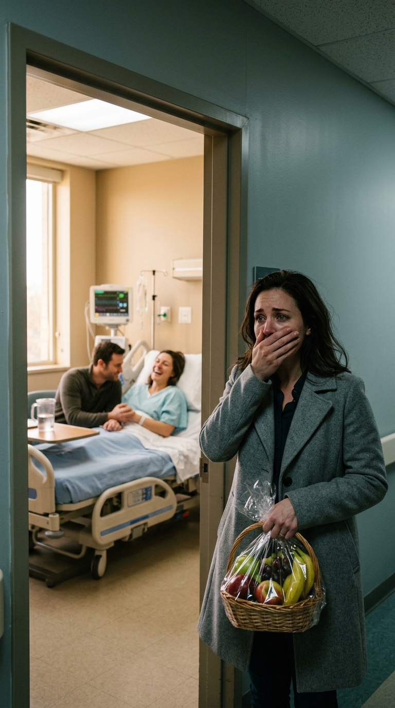 The scene inside struck me with such force that I had to brace my shoulder against the wall to stay upright. Tessa sat upright on the bed, glowing, animated, and unmistakably healthy, wearing a satin pajama set instead of a hospital gown, her hair brushed and styled in a way no one bothered with when they were truly ill. Beside her, leaning in with gentle patience, was Adrian, my husband, holding a small plate and offering her slices of apple the way someone feeds a person they adore, and his face wore the softness I hadn’t seen directed at me in months.