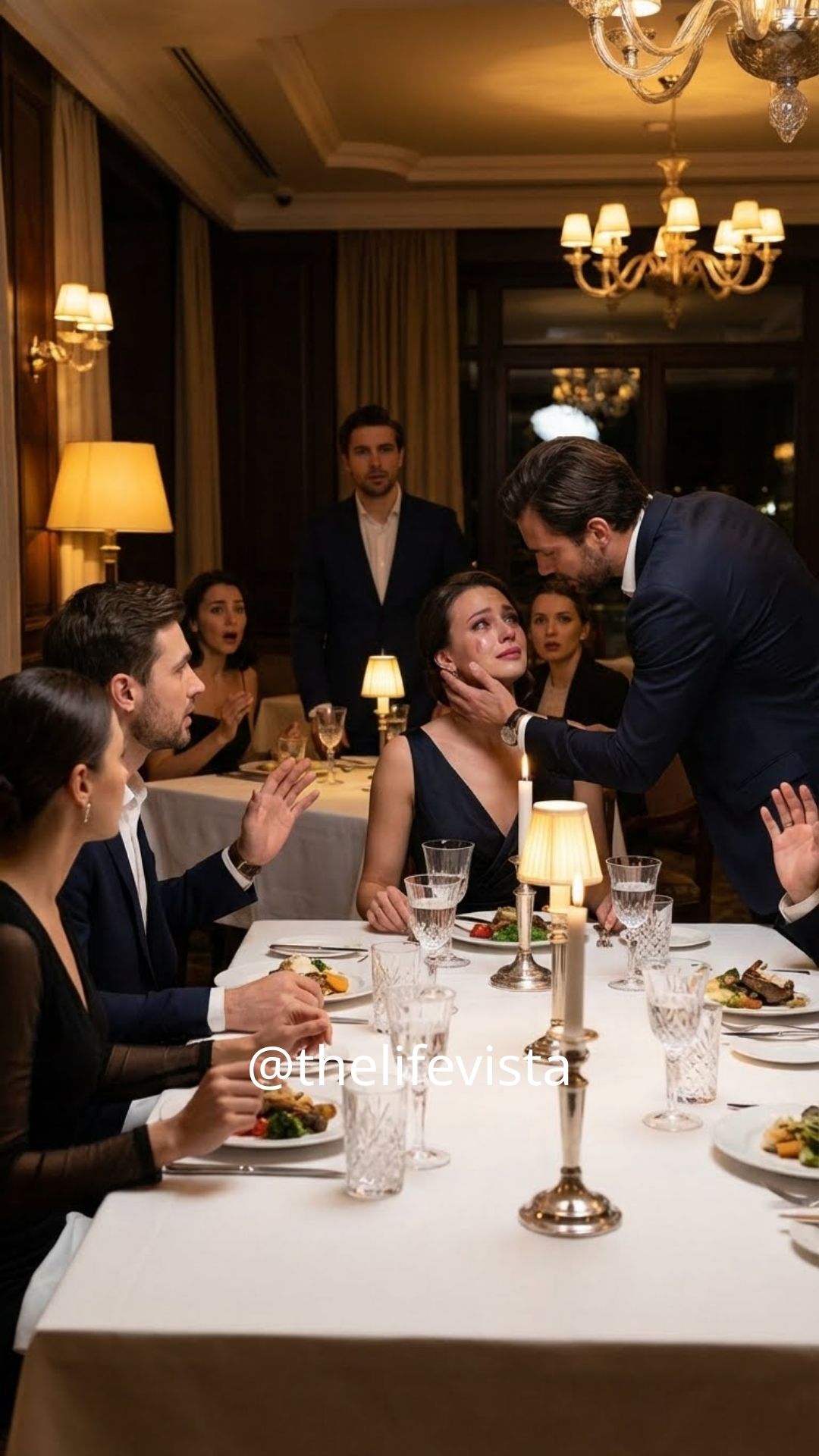 His expression darkened instantly. Without warning, he turned toward me and slapped my mouth with the back of his hand. The sound was sharp, unmistakable, and humiliating. The laughter died immediately. Every pair of eyes at the table locked onto us.