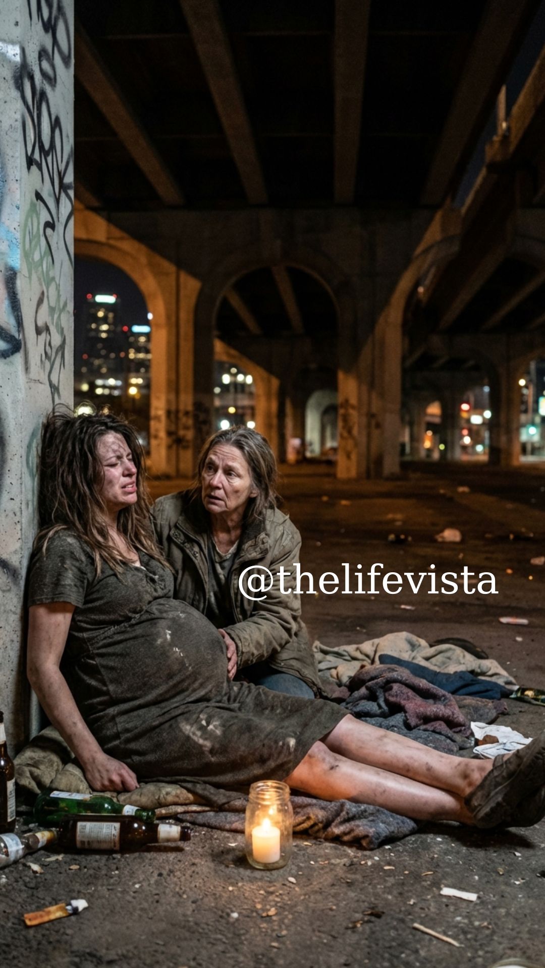 I wandered for hours in the cold, heart racing, belly aching. No hospitals. No police. I didn’t know who to trust. Eventually, I stumbled into a forgotten part of downtown, beneath a cracked freeway bridge. My legs gave out. I crawled behind a concrete pillar, breath shallow.