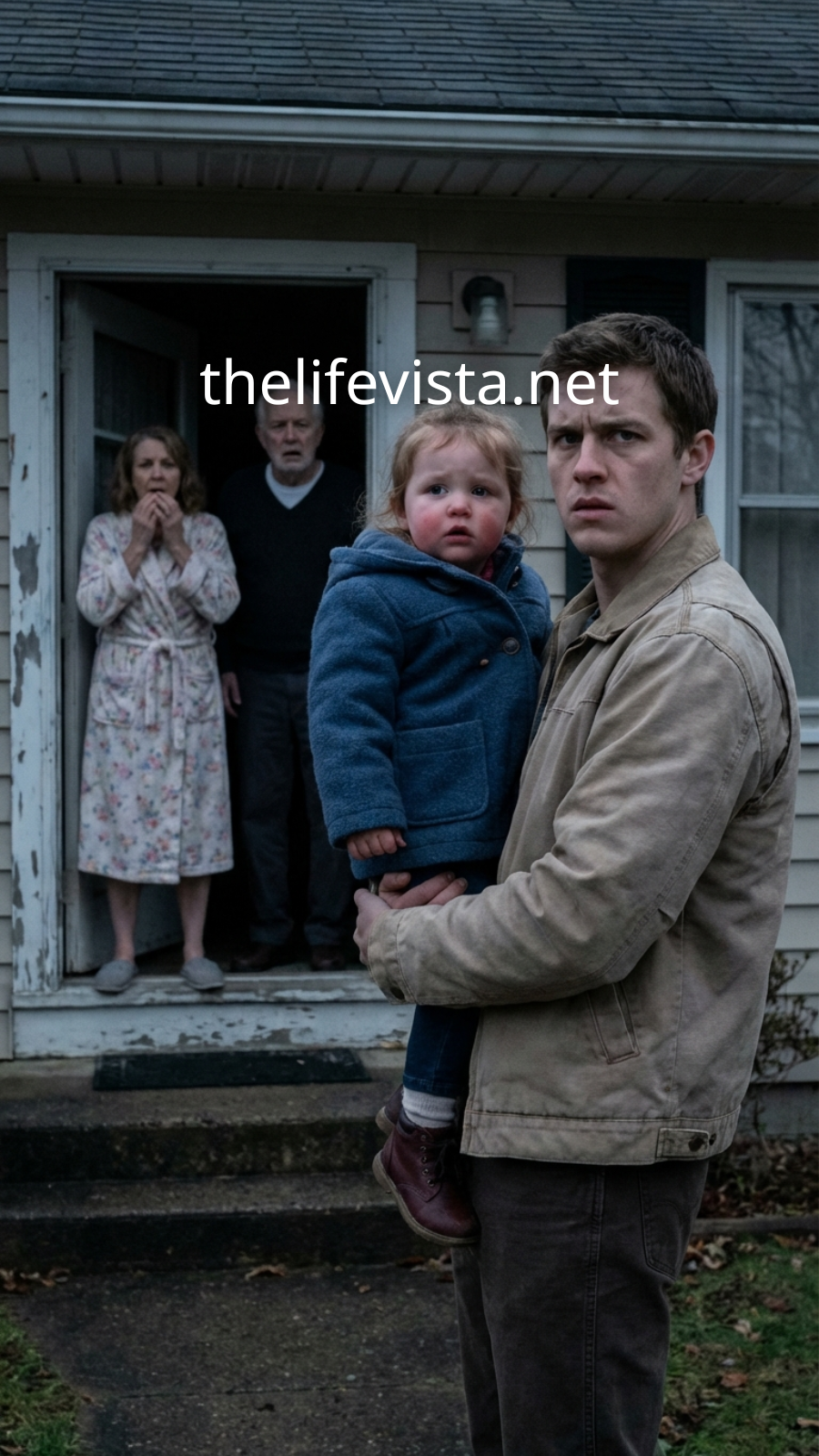 I lifted Lily out of her car seat. She insisted on jumping down herself, boots smacking the pavement, curls plastered to her forehead by humidity. She grabbed my hand, and we walked up the short concrete path past the flowerbed Dad kept threatening to redo and never touched.