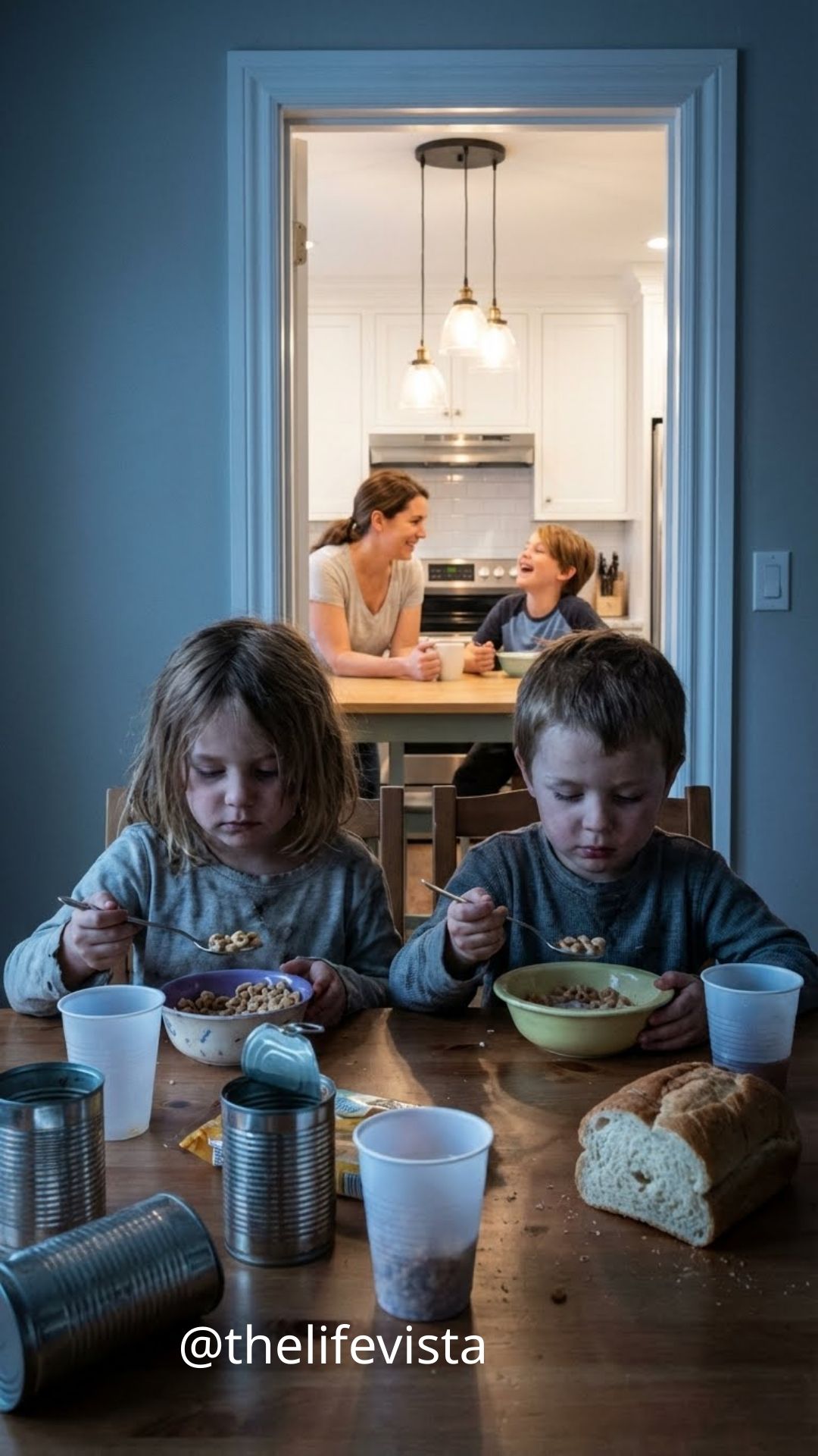 Ryan brought friends over, and Mom would cook steak dinners upstairs. Real steak. Mashed potatoes with butter. Green beans in garlic. I could smell it from the basement, that rich meat smell that made my mouth water painfully. Brooke and I would be handed two bowls of canned soup downstairs—expired, metallic, thin—and told we had “sensitive stomachs.”