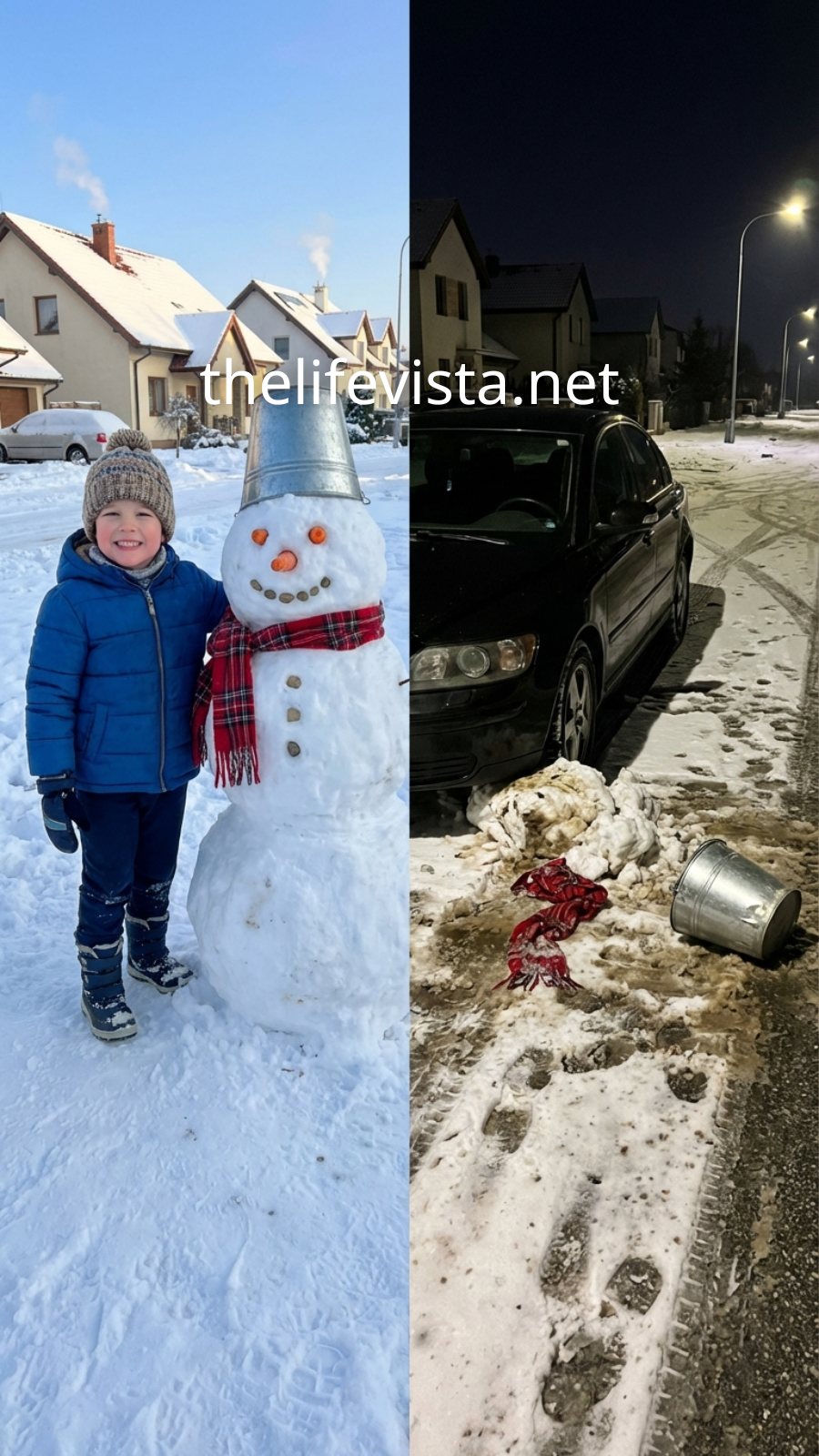 He worked in the same corner every day, near the edge of the driveway where our property met the street. It was clearly our side, marked by the old maple tree and the invisible line of the property deed. He’d roll the snow into lumpy spheres, stacking them with surprising structural integrity. Sticks for arms. Pebbles for eyes. And that ratty red scarf he insisted made them “official.”