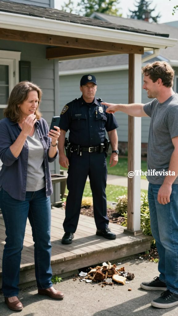 I grabbed my phone and took a photo of the police car parked in my driveway. My hands were shaking, not from fear, but from pure rage. Officer Martinez stood on my porch looking uncomfortable as Brandon pointed at a small pile of dog waste near the property line between our yards. Ma’am, your neighbor says your dog has been leaving waste on his property.