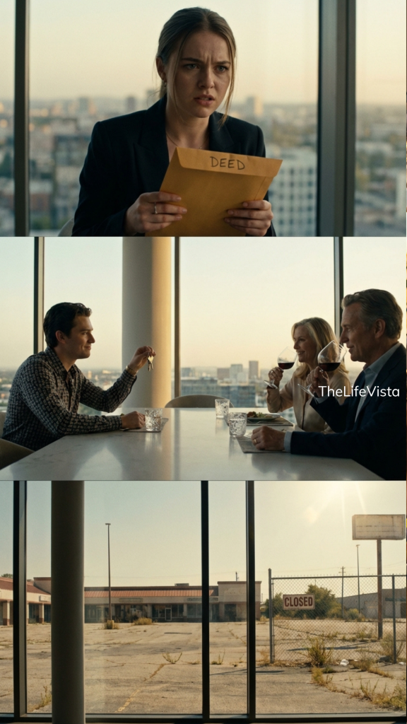 Then they slid a thin envelope across the table to me like they were doing charity work. Inside was a deed to a cracked commercial parking lot behind an abandoned strip mall on the west side of Phoenix, a piece of asphalt so empty it still had faded arrows pointing nowhere.