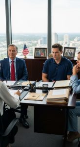 I didn’t stand up. I remained seated behind the desk— the seat of power— and gestured calmly toward the chairs arranged in front of me.