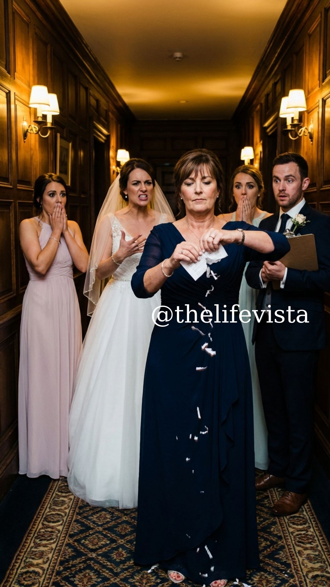 Her smile vanished. The hallway went silent. Behind her, the coordinator glanced at her clipboard, suddenly pale. The music outside swelled, guests arriving, unaware that everything was about to unravel. This was the moment when the wedding stopped being about flowers and photos, and became about consequences.