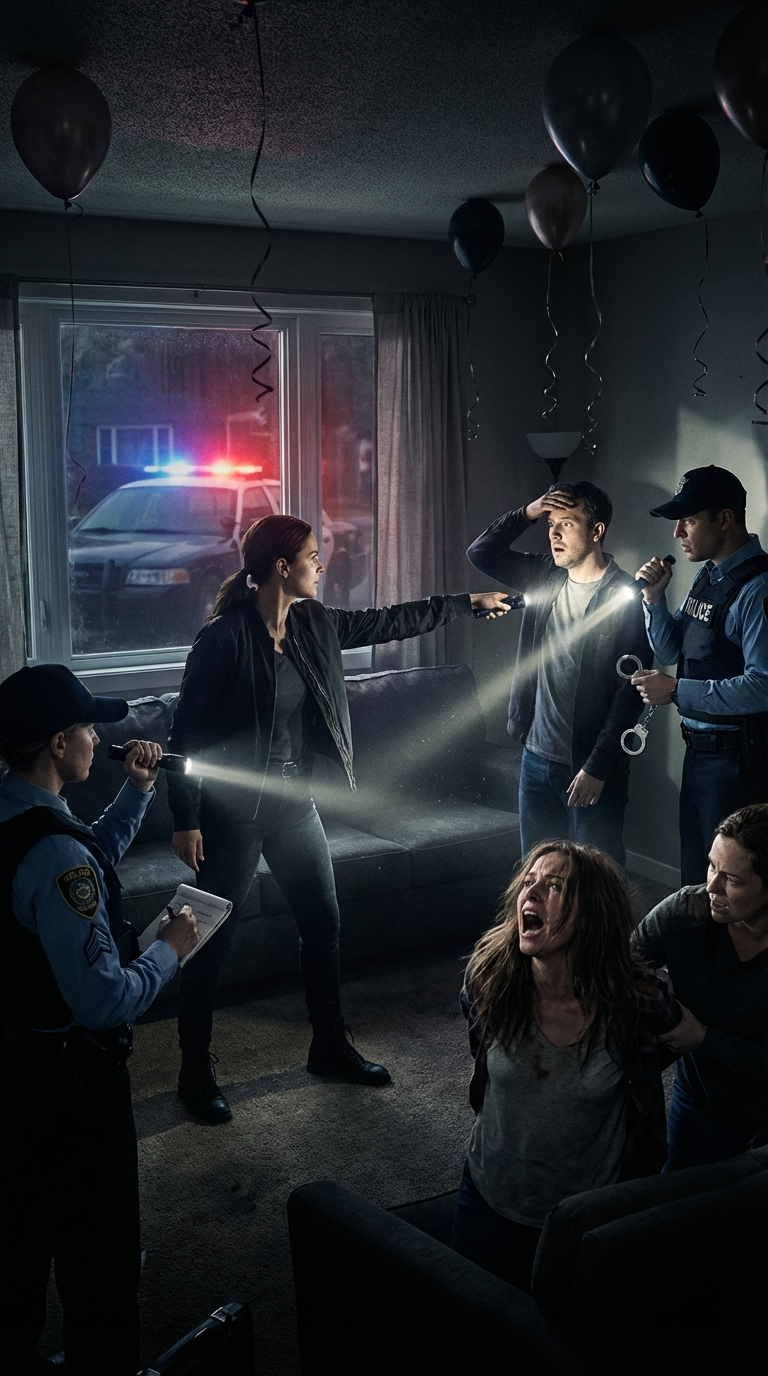 The front door opened. Two police officers entered, their own flashlights cutting through the darkness. “Adrian Cole Rivera?” one of them asked. The handcuffs gleamed in the dim light.