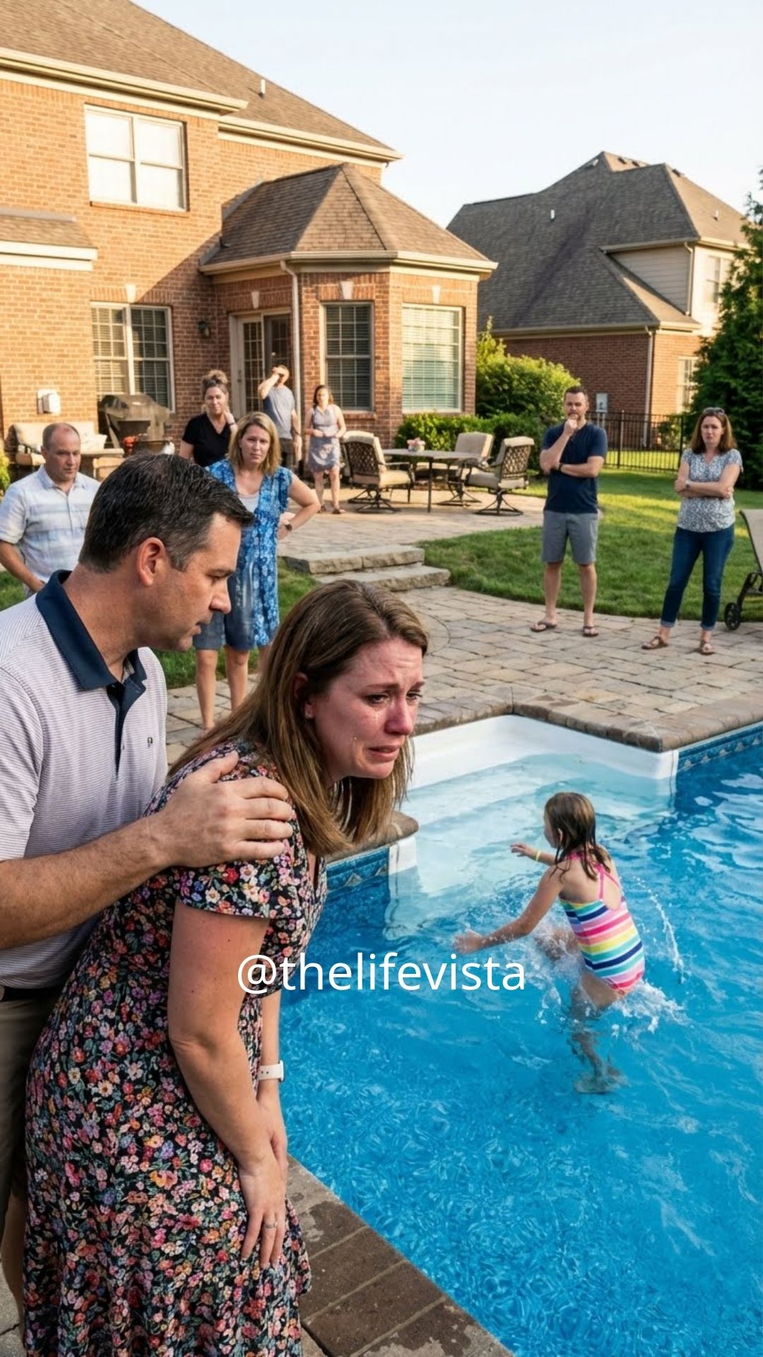 I stumbled forward and jumped into the pool, pulling Ava out. She was coughing violently, her body limp, her lips pale. I held her, shaking, whispering her name over and over until she finally cried. That sound—weak, broken—was the only thing that kept me standing.