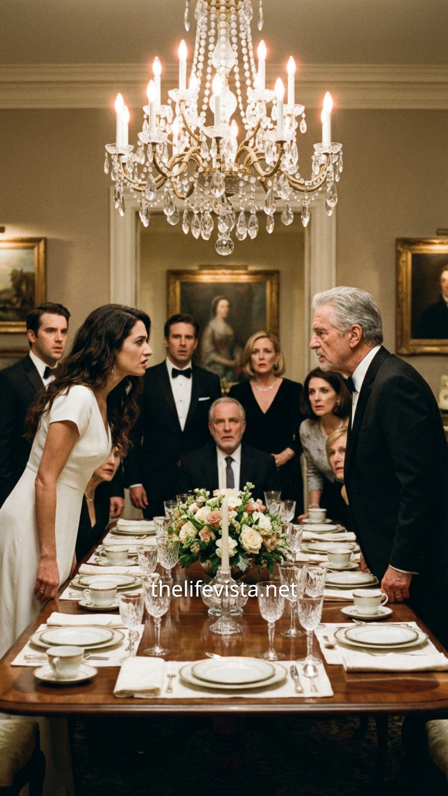 The venue was exactly as Serena would have wanted, polished stone, manicured surroundings, a doorman who seemed more like a guardian of status than a building. Inside, the private room shimmered under chandeliers, glassware gleaming, everything arranged with such precision it felt fragile. I spotted my family immediately. My parents positioned carefully, as if proximity to importance could reshape their own image. Serena in white, laughing too brightly. Grant, composed and polished. And at the center of it all, Grant’s father, Judge Thomas Wexler, a man whose presence carried the quiet authority of years on the bench.
