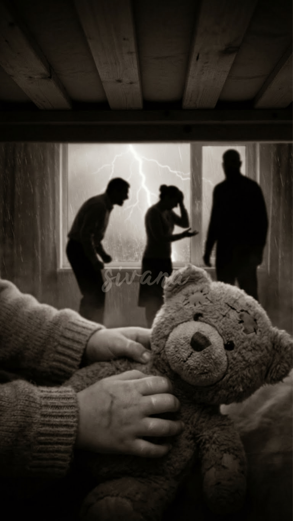 “That night… it was raining really hard,” he began, his voice a whisper. “I was playing with my Legos… and then the doorbell rang many times.” He paused, squeezing his teddy bear. “Dad was at the door… his face was very tense. I’d never seen him like that.”