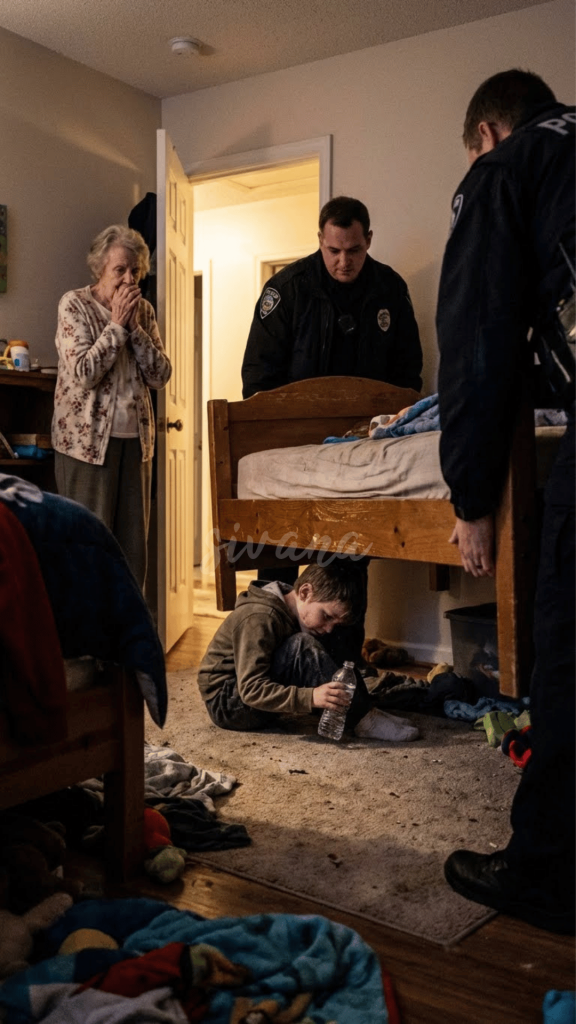 It was Aiden, my grandson, curled up underneath. He was so thin, his hair matted with sweat, and his clothes were filthy. He was clutching an empty water bottle, his eyes wide open and expressionless, as if he were looking into a world I couldn’t reach. I stood there, paralyzed, my heart stopped. The two officers were also in shock, unable to say a word.