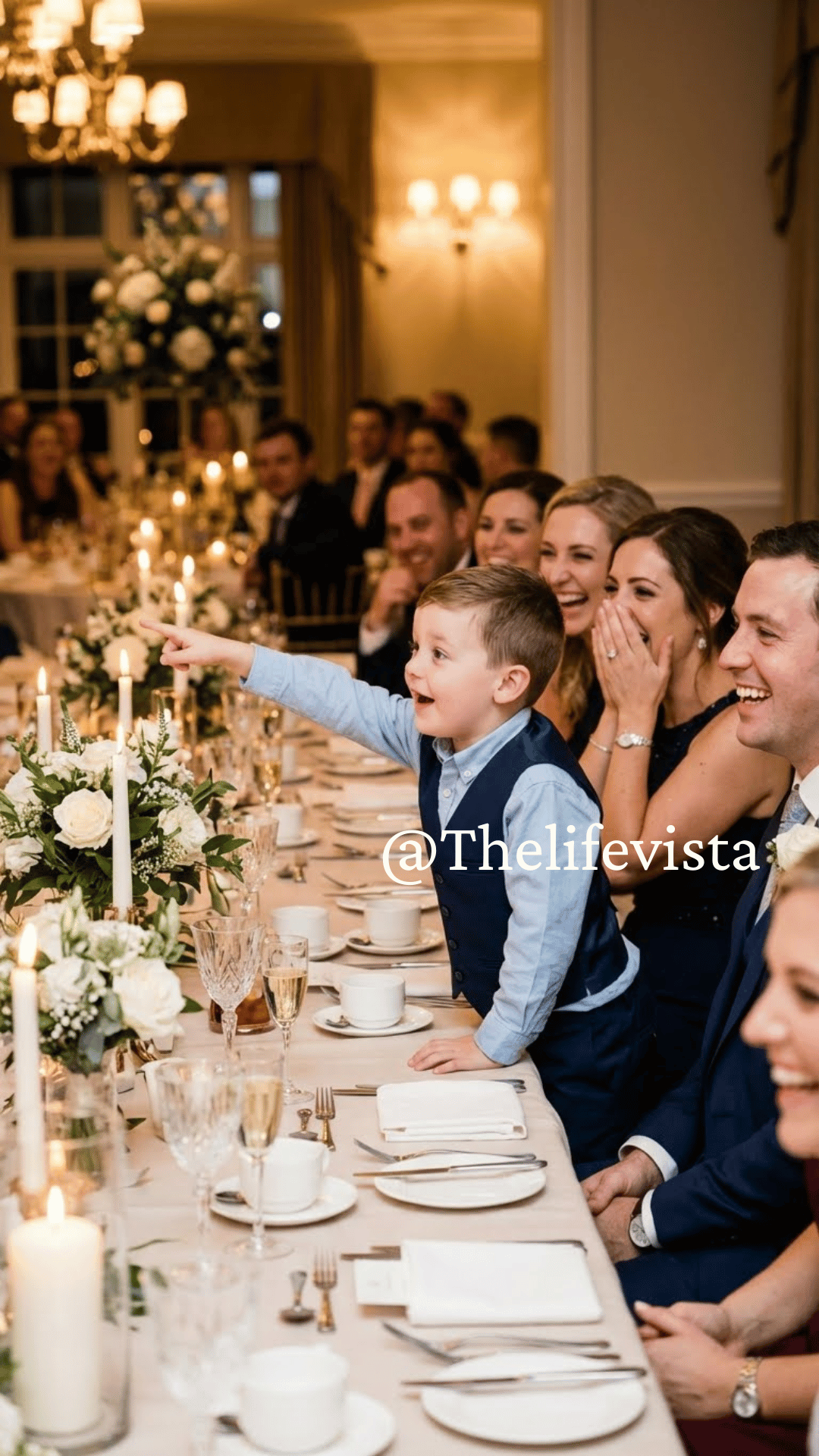 The surrounding conversations softened. Guests leaned in slightly, pretending not to stare while absolutely staring.