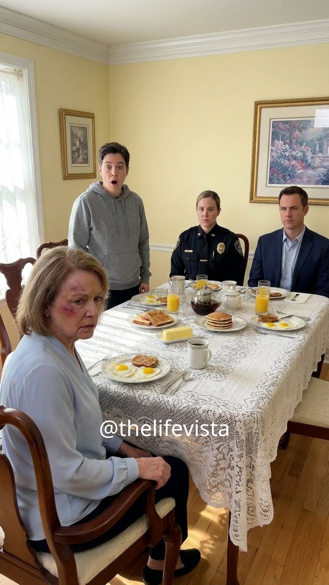 My son struck me last night, and I said nothing. This morning, I spread my lace tablecloth, cooked a full Southern breakfast, and set out the good china as if it were a holiday. When he came downstairs, he saw the biscuits and grits, smirked, and said, “So you finally learned.” But the smugness vanished instantly—the moment he noticed who was already seated at my table.