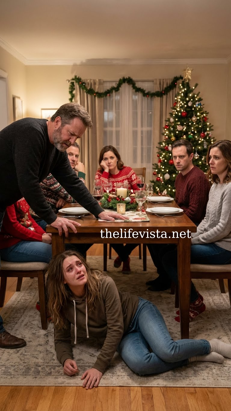 My stepdad slammed his hand on the Christmas table. Get up. That seat belongs to my real daughter. OUT. His voice sliced through the room. I felt every eye on me as I stumbled to the floor, my face burning under his smirk. But when I stood, something inside me shifted. He thought he had humiliated me. He had no idea that later that night, I would change his life forever.
