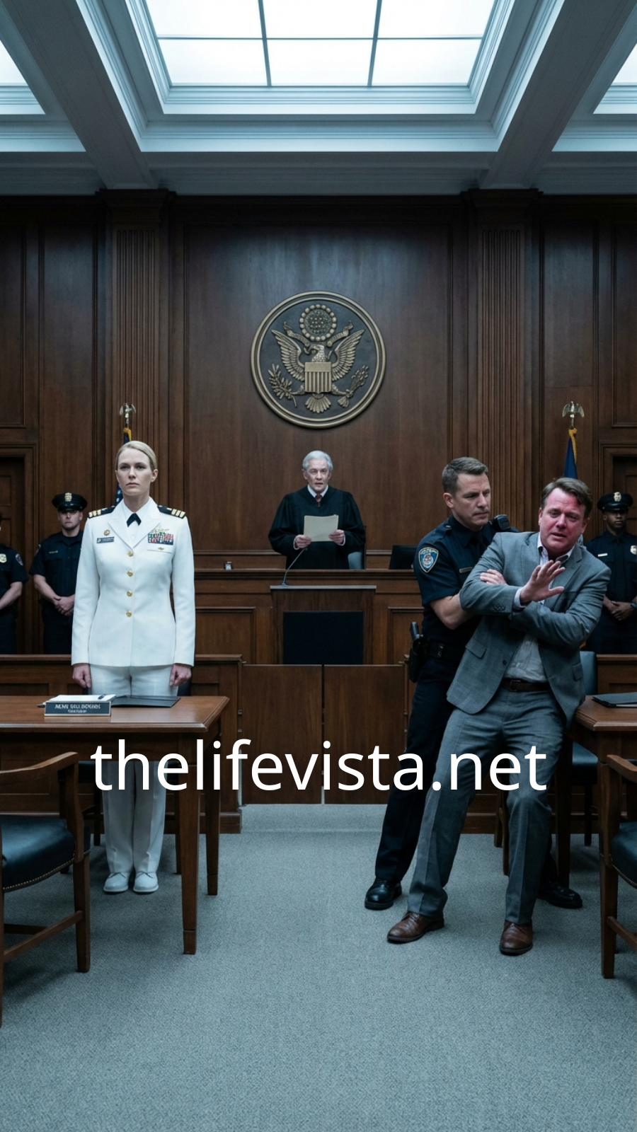 The doors shut with a heavy metallic click. Two deputies took positions along the walls. The court reporter froze mid-sentence, fingers hovering above the keys.