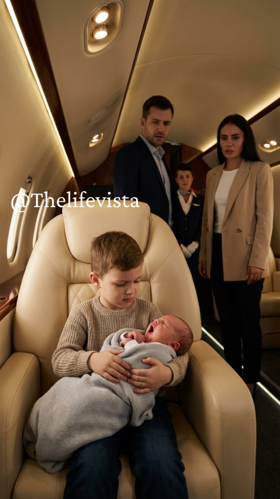 Curious glances followed as he walked down the aisle into first class. The billionaire and his wife looked startled when the boy stopped beside them. Malik didn’t say much. He simply reached out his hands toward the baby. Emily hesitated, then, out of exhaustion, handed Lily over.