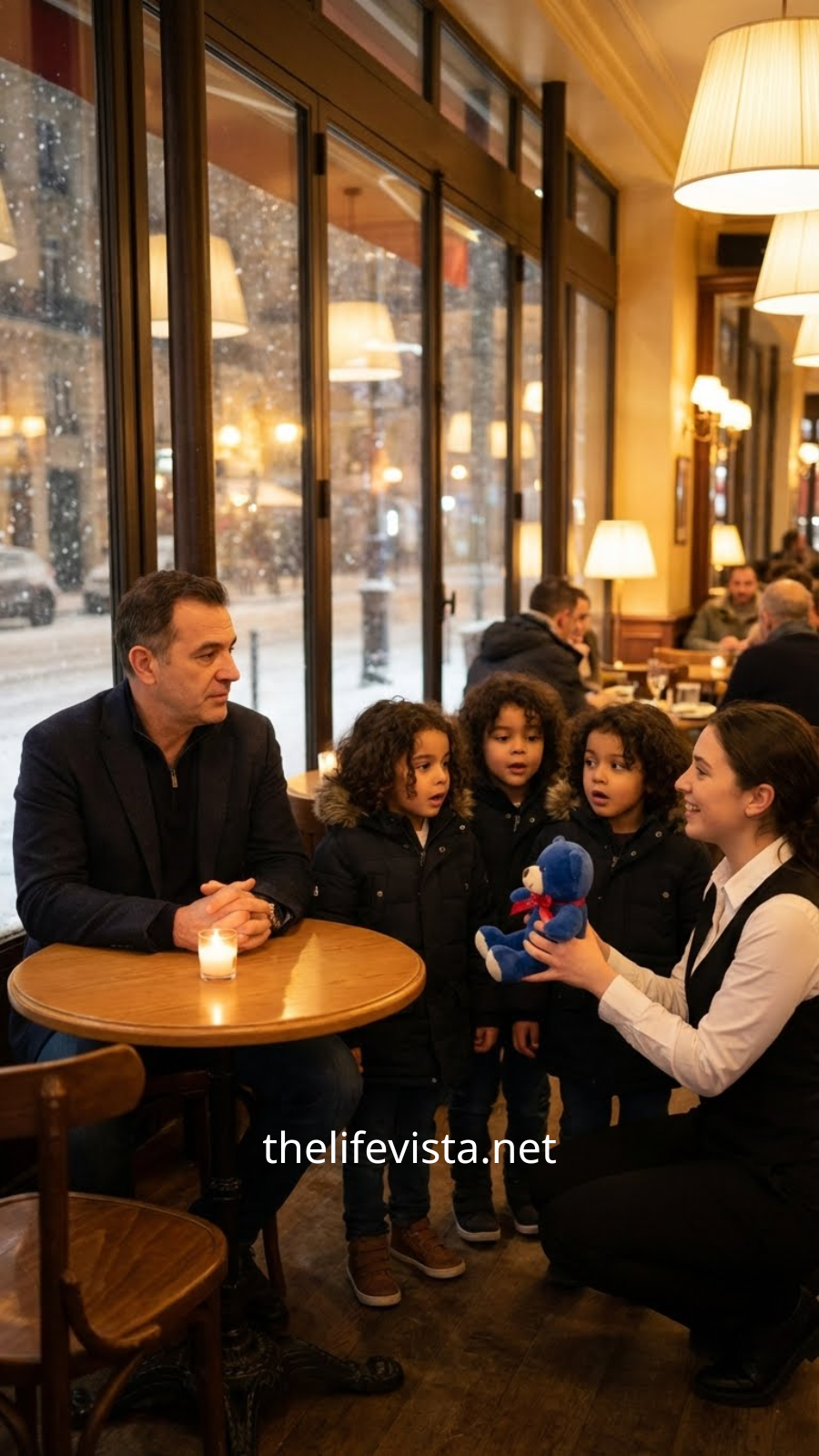 They were six years old, identical in a way that was almost unnerving. They wore matching navy pea coats and white tights that had been splashed with city mud. They didn’t hold hands, nor did they look around with the chaotic curiosity of children. They moved in a phalanx, a silent triangle of dark curls and pale, solemn faces.
