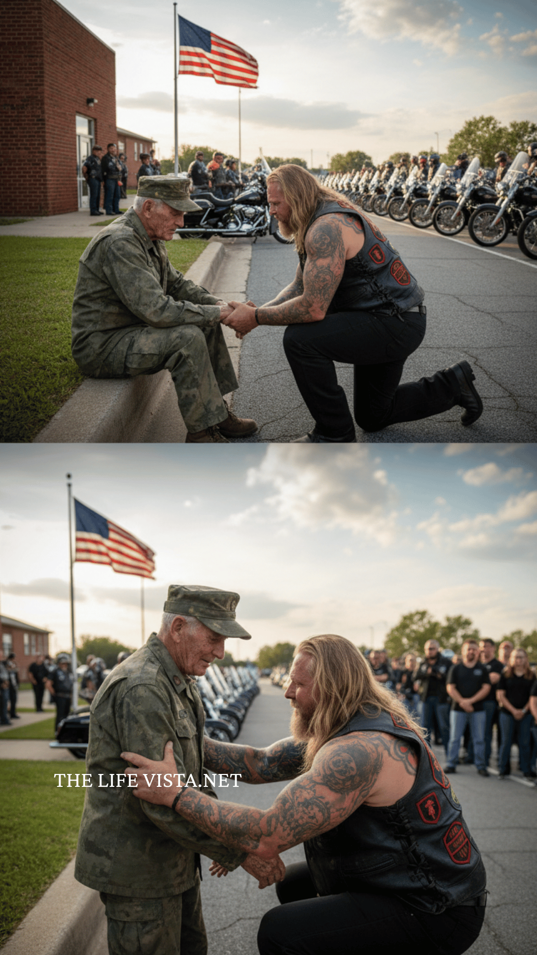 He was looking at the line of bikes, at the silent, disciplined figures saluting him. For the first time all day, he didn’t feel like a relic. He didn’t feel invisible. He didn’t feel forgotten. He felt seen.