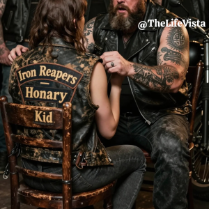 Hours passed inside that silent gas station, the storm slowly losing its grip on the night. By the time dawn crept across the sky, Lily’s shivering had eased, her breathing had stabilized, and faint color had returned to her cheeks. When snowplows and emergency vehicles finally reached the station, paramedics stepped inside to find a massive biker slumped against the counter, cradling a tiny girl wrapped in foil blankets. “Sir?” one of them asked gently. Jack lifted his head, exhaustion etched into every line of his face. “She’s stable,” he said. “Keep her warm. She’s fragile.” Lily stirred, gripping his vest. “Don’t leave me,” she whispered. “I’m coming with you,” Jack promised without hesitation.