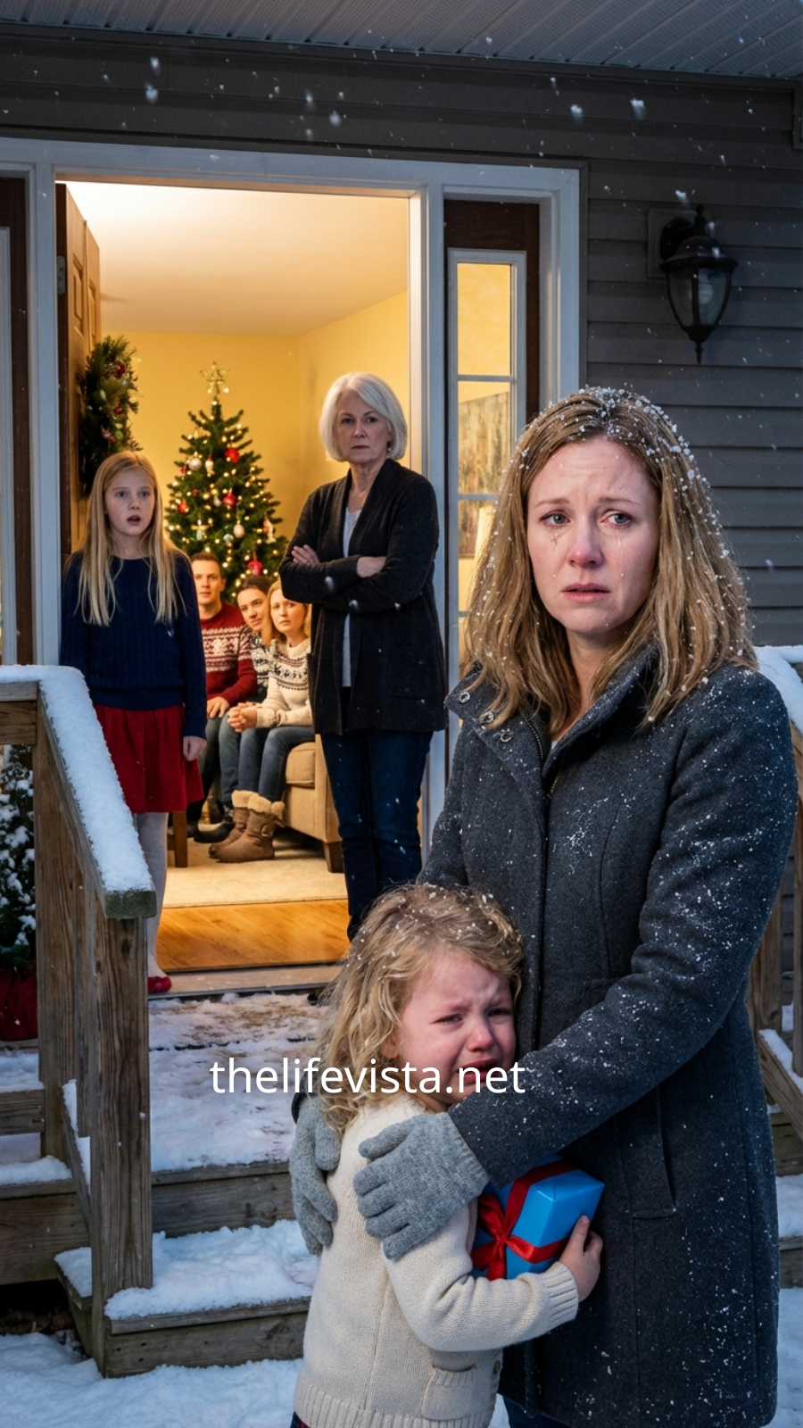 I walked up the snowy path and knocked again, my heart hammering against my ribs, bracing myself for whatever waited behind that door. Then my mother appeared, her voice colder than the winter air outside. “Tonight is for real family only, Megan. Take the kids and don’t come back.”
