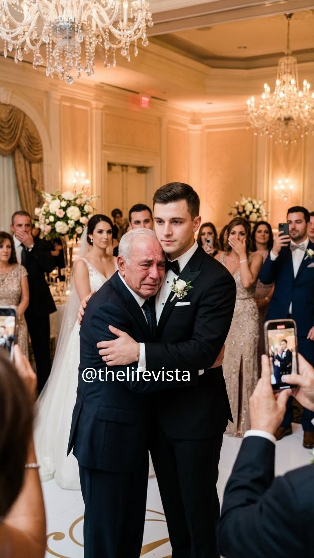 The ballroom glittered with crystal chandeliers and gold-trimmed chairs, packed with nearly five hundred guests—business associates, distant relatives, and socialites I barely knew. It was my wedding day. I stood at the altar in a tailored tux, trying to ignore the knot in my stomach. Across the room, my father, Michael Brooks, sat quietly in an old but clean gray suit. He looked uncomfortable, hands folded on his knees, eyes lowered.