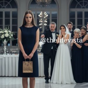 I walked into the engagement party in a borrowed navy dress, the hem a little uneven because I’d stitched it myself that morning. The banquet hall smelled like...