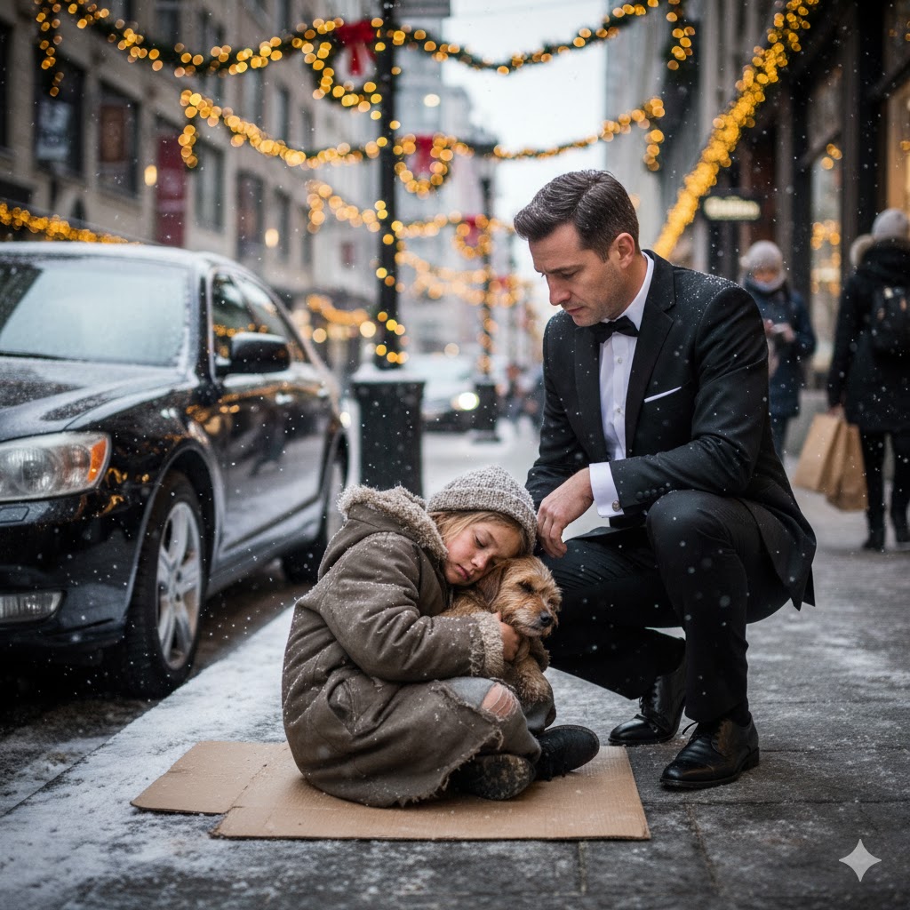 He stepped out, the icy wind slicing through his tailored suit. The street was silent except for the whisper of snow. As he approached, the little girl stirred, her frightened eyes darting up.