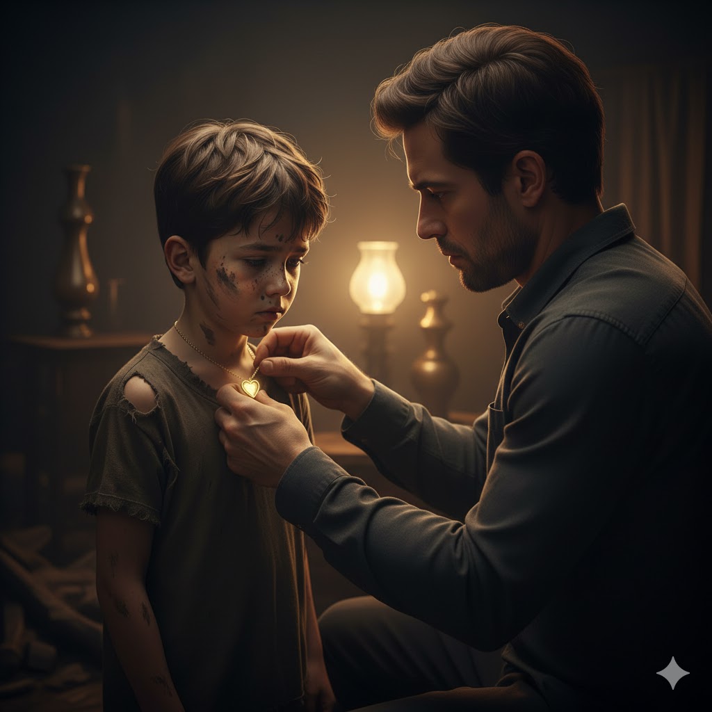 One cold evening, as he hurried through a narrow alley behind his office tower to avoid reporters, something made him stop. There, crouched beside a dumpster, was a small boy—barefoot, soaked, and trembling. His clothes were torn, his hands scraped. William might have walked past, but something glimmered on the boy’s neck.