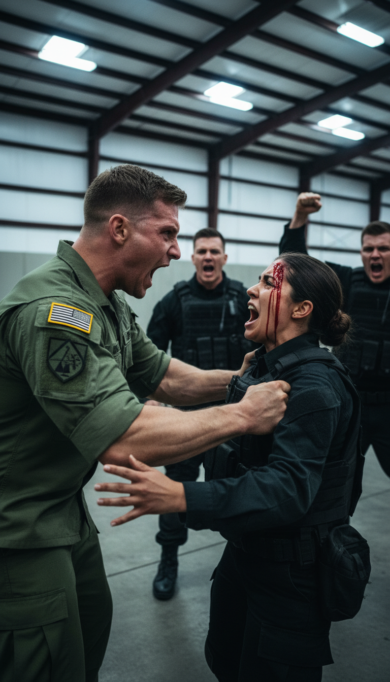 As the drill reset, another instructor stepped in from the side—out of position, out of protocol—and delivered a sharp, unexpected strike to Aria’s jaw. It wasn’t part of the drill. It wasn’t controlled.
