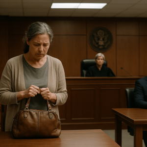 Part 1 The courtroom was silent except for the hum of the fluorescent lights. Olivia Harris stood at the defendant’s table, her trembling hands clutching a worn purse....