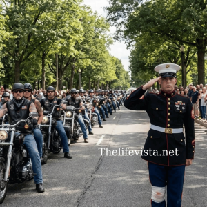 An injured Marine held his salute for three hours—then bikers appeared and did the unthinkable…