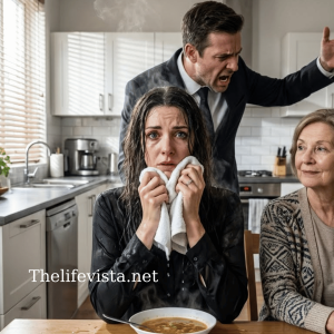 At the family dinner, my husband poured hot soup on my head while his mother laughed. Then he said, “You’ve got 10 minutes to get out.” I wiped my face, pulled some papers from my bag, laid them on the table, and said calmly, “You’re right. Ten minutes later…”