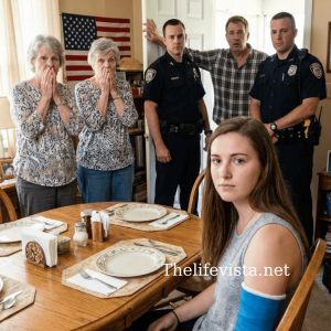 At the family dinner, I sat stiffly at the long oak table in the Carters’ dining room, my left arm wrapped in a bright blue cast and secured...
