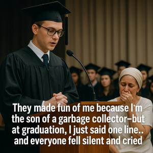 They mocked me for being the son of a garbage collector — but at graduation, I said just one sentence… and the entire room fell silent, tears streaming down their faces.