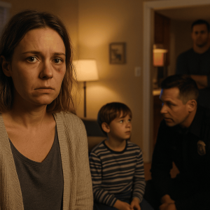 The flashing red and blue lights washed over the Carter living room like bruises made of light. The air smelled faintly of whiskey, sweat, and broken promises. Emma...
