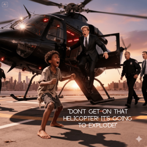 “Don’t get on that helicopter! It’s going to explode!” — a homeless Black boy shouted to a wealthy billionaire, and the truth that followed left everyone shocked…